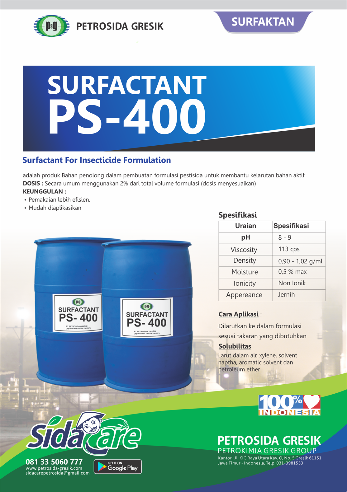 produk bahan penolong dalam pembuatan formulasi pestisida untuk membantu kelarutan bahan aktif.